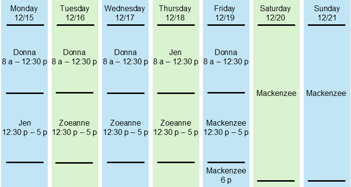 Here is our contact schedule for this week